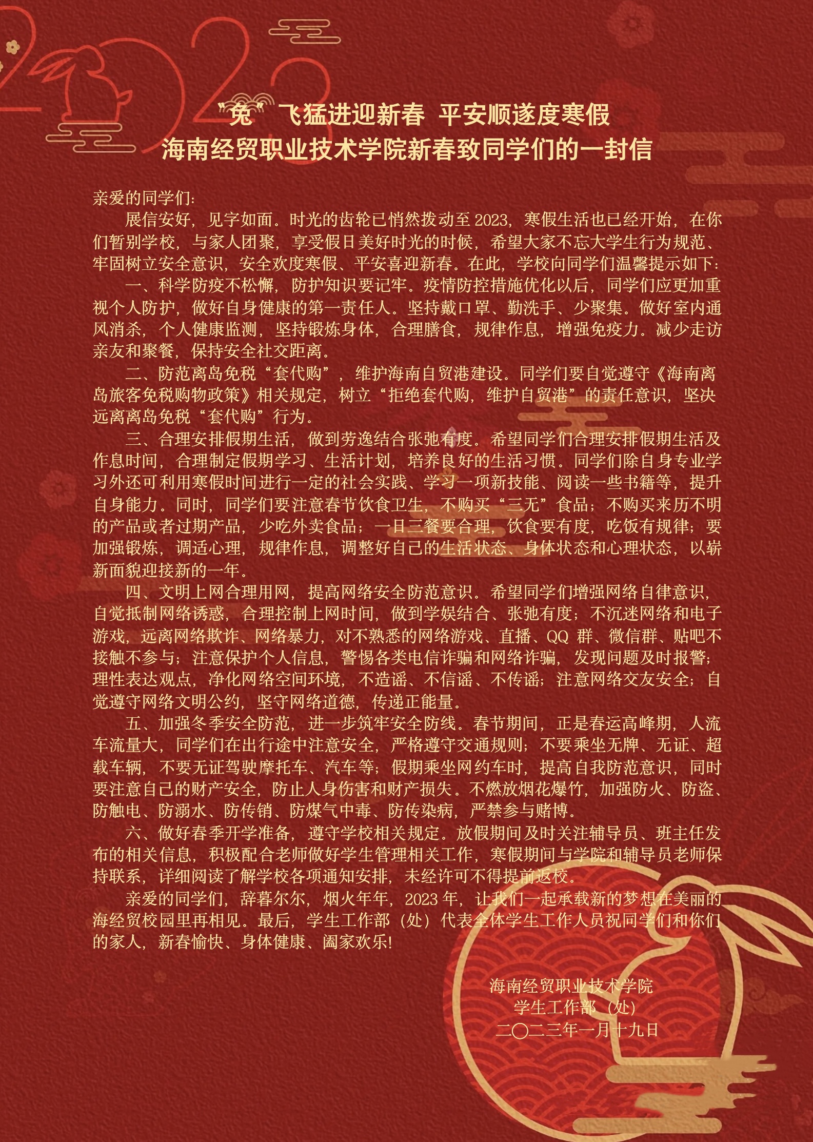 “兔”飞猛进迎新春 平安顺遂度寒假——beat365新春致同学们的一封信