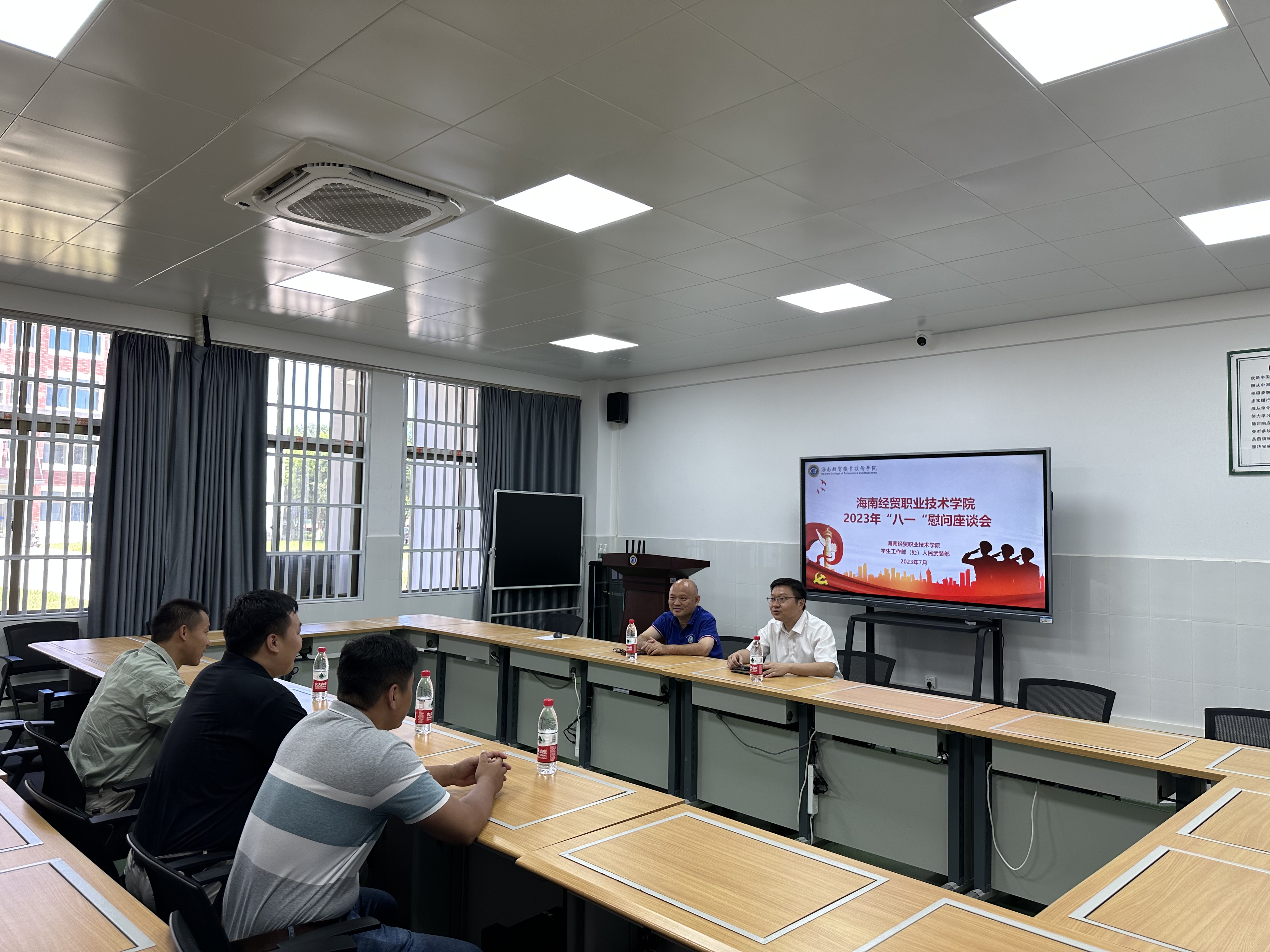 近日,在第九十六个建军节到来之际,我院召开2023年“八一”慰问座谈会。座谈会由我院学生工作部(处)副部长、人民武装部部长彭陈俊主持,学生工作部(处)部长符绩彰出席座谈会。
