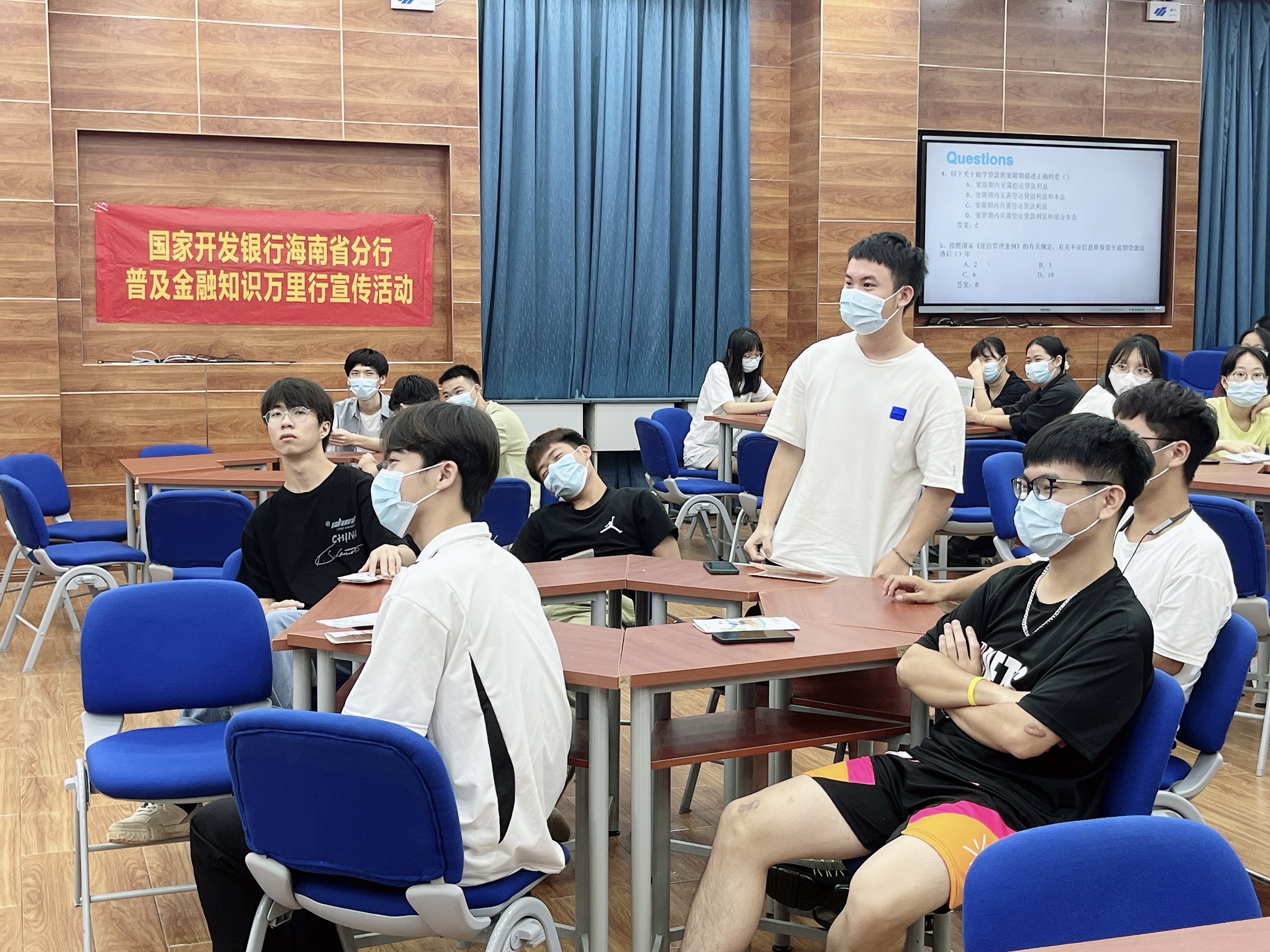 谢华荣经理向同学们详细介绍了生源地信用助学贷款办理发放流程、首贷续贷手续、就学信息变更以及还款方式等相关金融知识,解读了最新出台的生源地信用助学贷款政策,并结合生动的案例,引导学生树立诚信意识,理性消费,珍爱个人征信记录,同时教育学生提高安全意识,防范金融诈骗,远离非法集资等活动,切实提高大学生的诚信意识和金融安全防范意识。讲座最后,学生们还积极参与到互动环节,抢答问题赢取礼品,现场气氛活泼热烈。