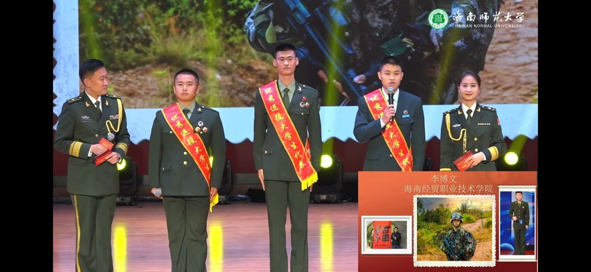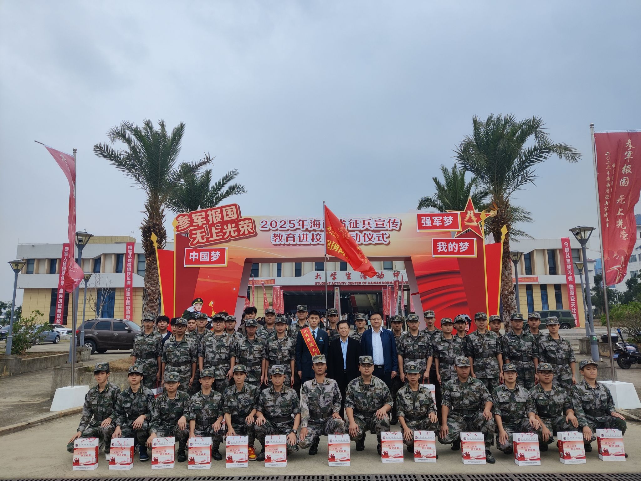 12月28日上午,由海南省人民政府征兵办公室、海南省教育厅、海南省军区动员局、海南省海口警备区主办,海南省海口市琼山区人民武装部、海南师范大学承办的2025年海南省征兵宣传教育进校园活动正式启动,我校琼崖国防预征班人员及部分优秀大学生士兵参加本次活动。学校党委委员、副校长陈修焕,学生工作部副部长、人民武装部部长彭陈俊出席本次活动。