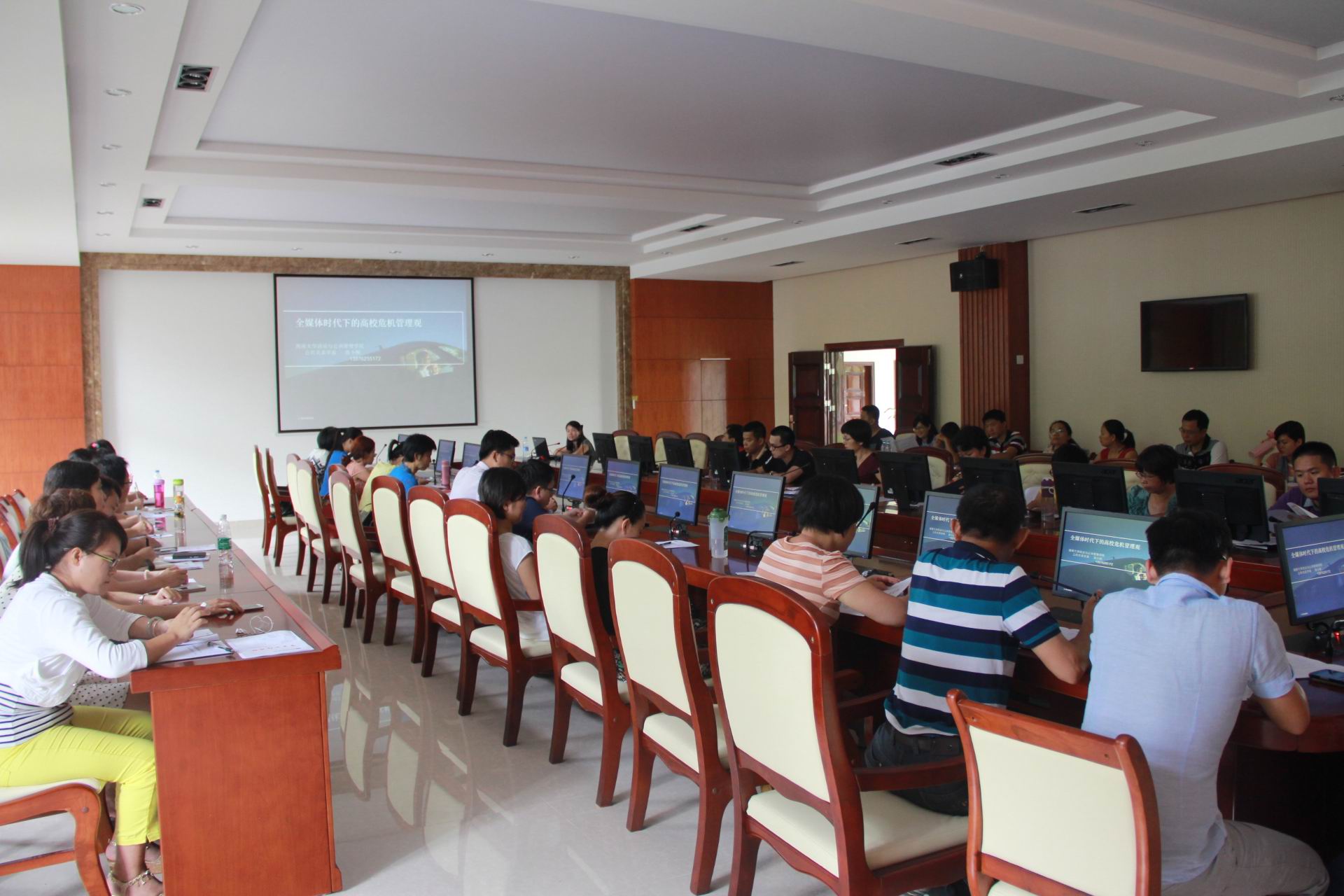 会上,首先邀请了海南大学政治与公共管理学院陈小桃教授为我院全体学工人员进行以“全媒体时代下的高校危机管理”为主题的知识讲座。陈教授以敏锐的社会触觉、幽默风趣的语言以及坚持理论结合实际的原则,站在全媒体、全时空、大数据的时代背景下,引用了大量相关的社会现象案例,从高校的危机、危机的特性、高校危机的分类,高校校园危机事件应对机制等方面向到会的各位老师阐述了关于高校校园危机管理的基本理论。同时以近年我国高校频发的危机事件警醒大家应把危机意识纳入到工作常态中,第一时间关注学生的学习和生活。未雨绸缪,防患于未然。参加讲座的辅导员表示通过理论和案例讲解相结合的培训收获很大,这将对自己的工作有直接的借鉴作用。
