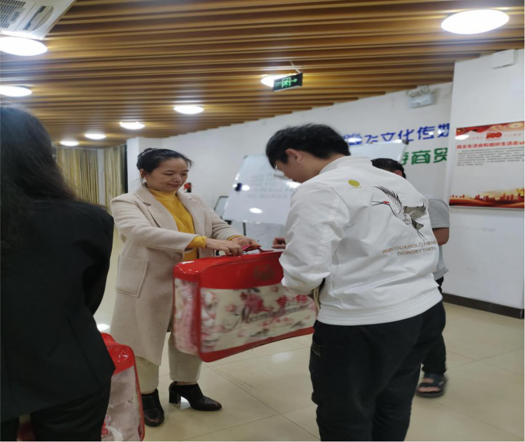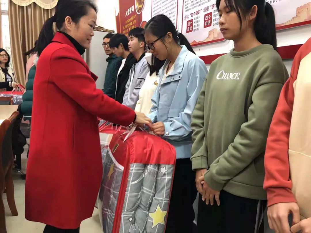 向有需求的学生提供御寒棉被,送去学院的关怀和温暖。
