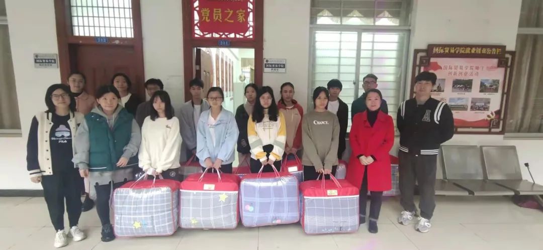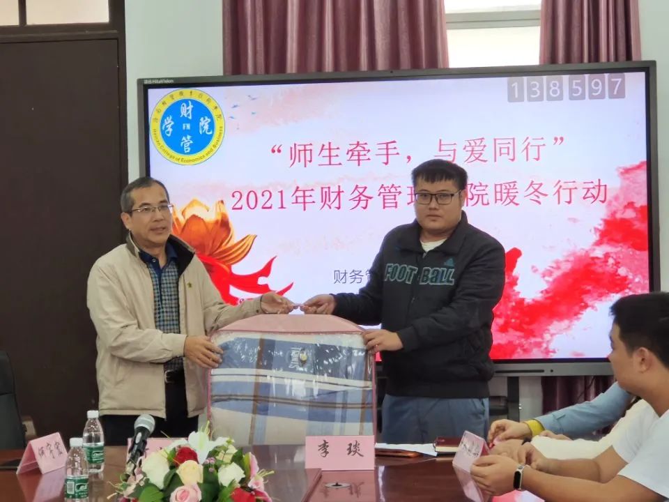 财务管理学院开展“师生牵手,与爱同行”暖冬行动,在寒冷的冬季为包括水头村学生、孤儿、残疾学生等在内的30名贫困学生送上“一床棉被、一盒牛奶、一张饭票”的“三个一”的温暖与关怀。
