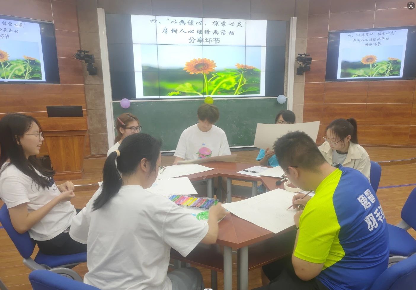 2024年5月13日,为了进一步了解学生的心理健康状况,舒颜心理工作室在2教215教室开展“以画读心,探索心灵”房树人心理绘画活动。