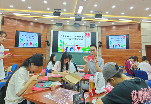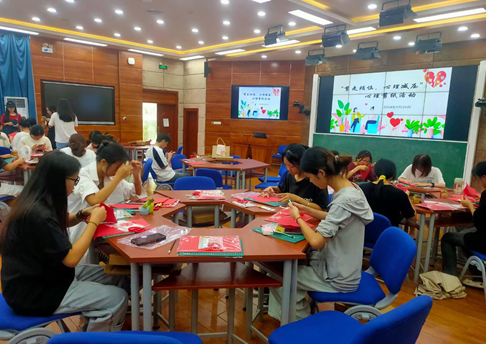 在剪纸过程中,教学小老师耐心指导参加的学生绘画和剪纸镌刻技巧,通过学习和自我探索,同学们手脑并用剪出了预期的图案。在活动中,同学们一边交流剪纸技巧,一边与杨老师交流学习工作压力事件,通过剪纸艺术释放了日常紧张繁忙的学习压力,体验着成功的喜悦。