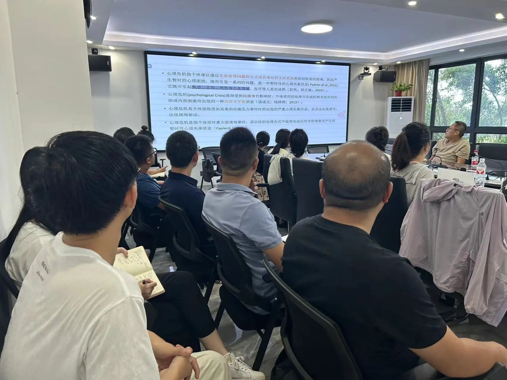 此次培训从危机定义、危机特征、危机发展进程、自杀信号识别、危机干预流程与技术五个方面展开。陈圣老师带领各位老师深入剖析近年来发生的典型心理危机案例引入此次培训,让各位老师了解到心理危机发生、发展的普遍性、突发性与低龄化。随后,陈圣老师分析了诱发自杀危机的因素以及自杀的预兆信号,同时也和大家交流了危机干预流程与技术,讲授了处理危机时的心理关怀技巧。最后,与会老师交流了各自工作遇到的危机事件与处理办法,分享了各自的学习感受。