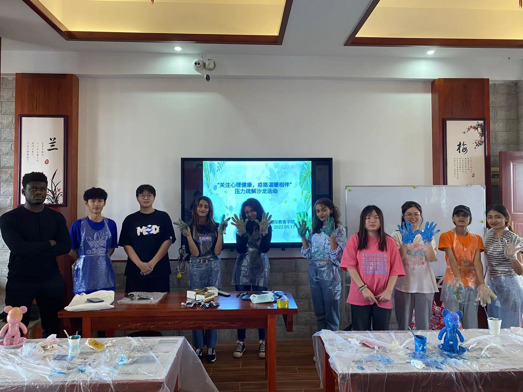 5月17日中午,国际教育学院学生开展心理活动月“关注心理健康·疫路温暖相伴”压力疏解活动。国际教育学院党总支副书记郑艳、辅导员韩笑和肖意出席本次活动。