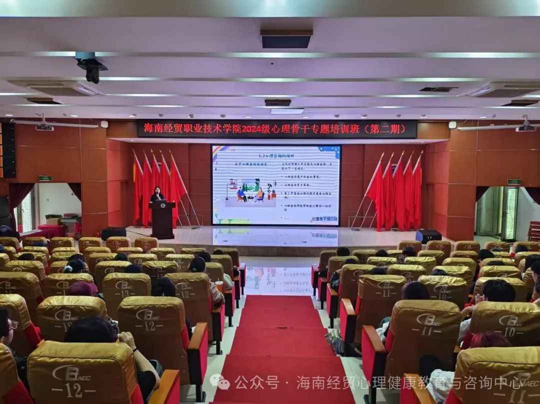 为进一步推动学校心理健康教育工作高质量发展,强化心理健康教育四级联动建设,提升朋辈互助力量,促进学生身心健康成长,3月11日下午,学生工作部(处)心理健康教育与咨询中心在经贸宾馆学术报告厅组织开展了第二期2024级心理骨干专题培训班。培训由心理中心专职心理咨询师符宜静老师主讲,全校2024级心理委员及大学生心理协会干事参加了培训。