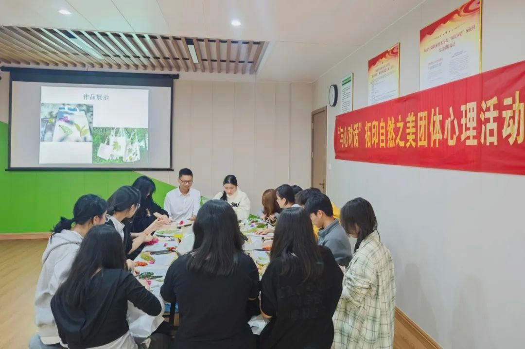 2025年3月18日,由心理健康教育与咨询中心主办的“与心对话”拓染成长团体活动在6教108幸福团体辅导室举办。本次活动以“自然与心灵的交融”为主题,通过拓染艺术创作,大家将植物叶片、花瓣的自然纹理印染在布料上,让同学们体验了艺术疗愈的魅力。