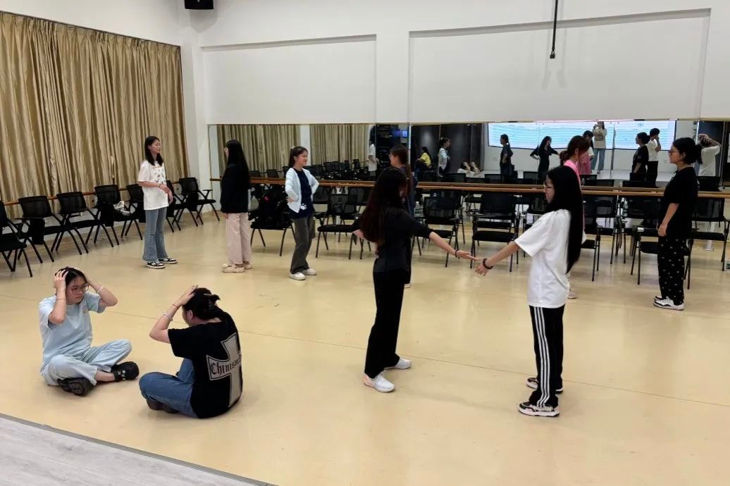 随后,进入团队协作环节。通过“你划我猜”挑战赛让同学们通过肢体演绎开心、愤怒、翱翔等抽象词汇,同学们在笑声中打破隔阂,默契值直线上升。在镜像模仿环节,同学们在“复制”与“被复制”中,看见他人眼中的自己,也发现相似与差异的奇妙联结。同时也感受到不同节奏的能量流动,团队的凝聚力在肢体同步中悄然生长。