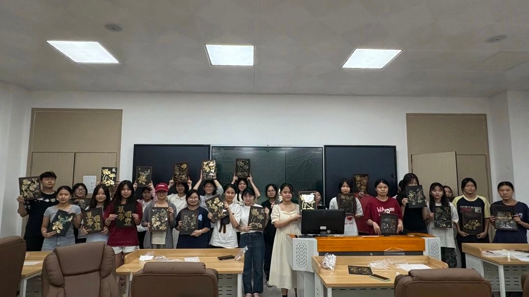 这场沉浸式创作不仅让同学们领略 “一寸箔片一寸金” 的非遗魅力,更成为心灵疗愈的温暖时光。专注创作时的沉静,协作完成作品时的默契,让传统文化不仅流于指尖,更浸润心田。未来,学院将持续开展此类活动,让非遗技艺在校园焕发新生,让文化自信与心灵成长同频共振。