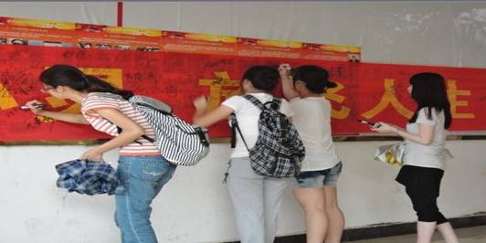 本院5月11日讯(学生工作处报道),5月6日18:00在心理咨询中心教师的指导下,同学们在西教学楼一楼大厅开展了“爱的传音筒”活动。参加本次活动的有:各系部心理健康部成员、心理委员及部分学生代表。活动时间选在母亲节即将到来的5月6日,旨在让在经贸求学的学子们给自己的母亲送上最美好最真挚的祝福,感谢母亲这么多年来的养育之恩。活动通过书写、粘贴祝福卡片和横幅签名等形式开展,通过这些方式把对妈妈的爱表达出来,在卡片板上和横幅上写满了他们的名字和祝福的话,有单纯祝福母亲的身体健康的,有要励志成功感恩母亲的,还有一些向母亲道歉的,凡此种种,都表达出了在外求学的经贸学子对家乡,对父母的思念之情。