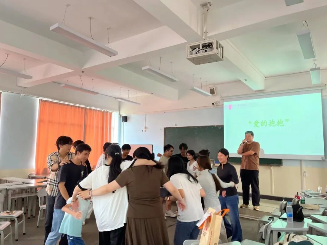 活动在轻松愉快的氛围中拉开帷幕。在符老师的引导下,一场名为“爱的抱抱”的破冰游戏迅速点燃了现场气氛。同学们随着音乐围圈奔跑,在口令声落下的瞬间,欢声笑语中彼此拥抱,瞬间拉近了心与心的距离,现场氛围温馨而热烈。